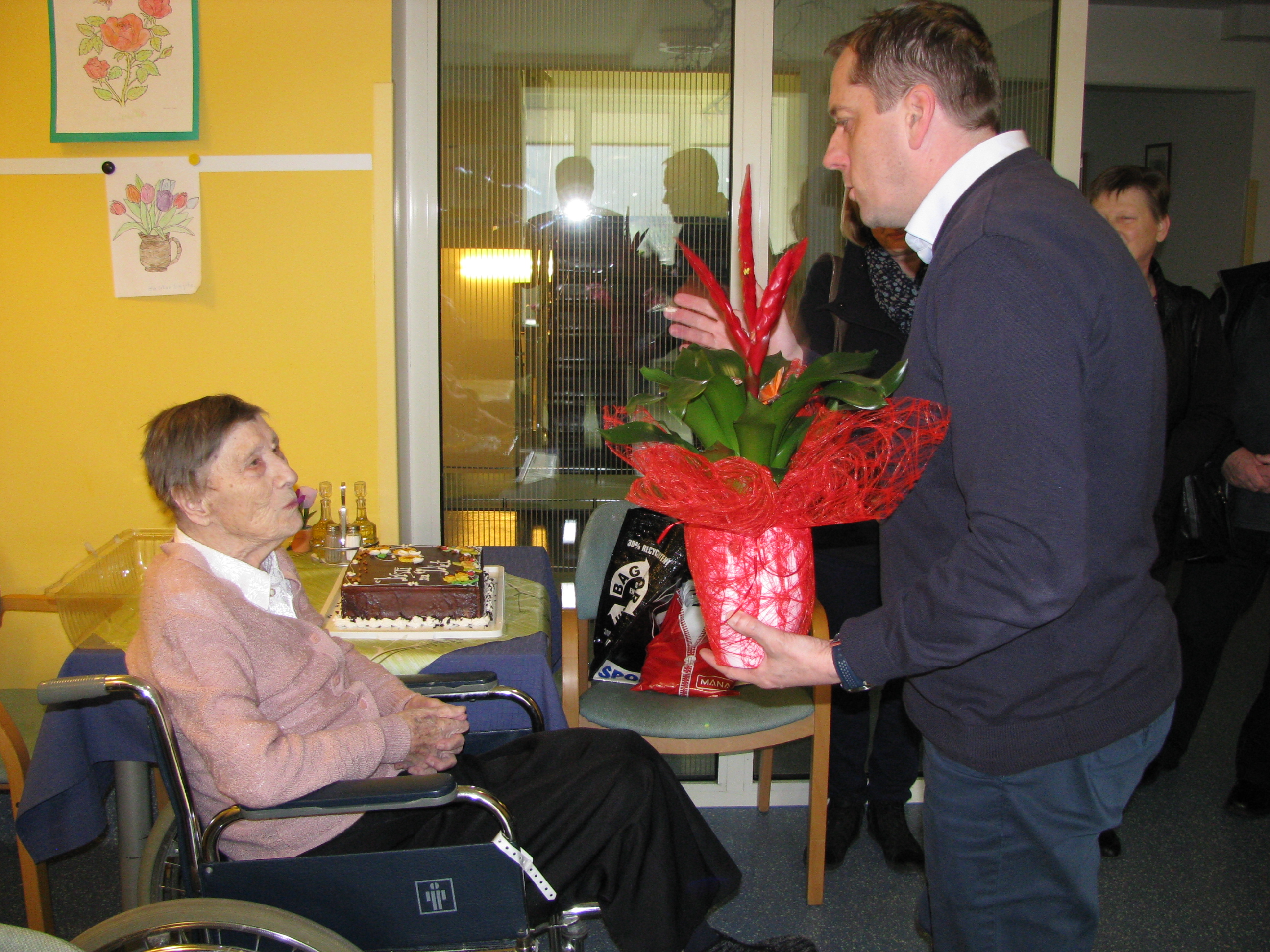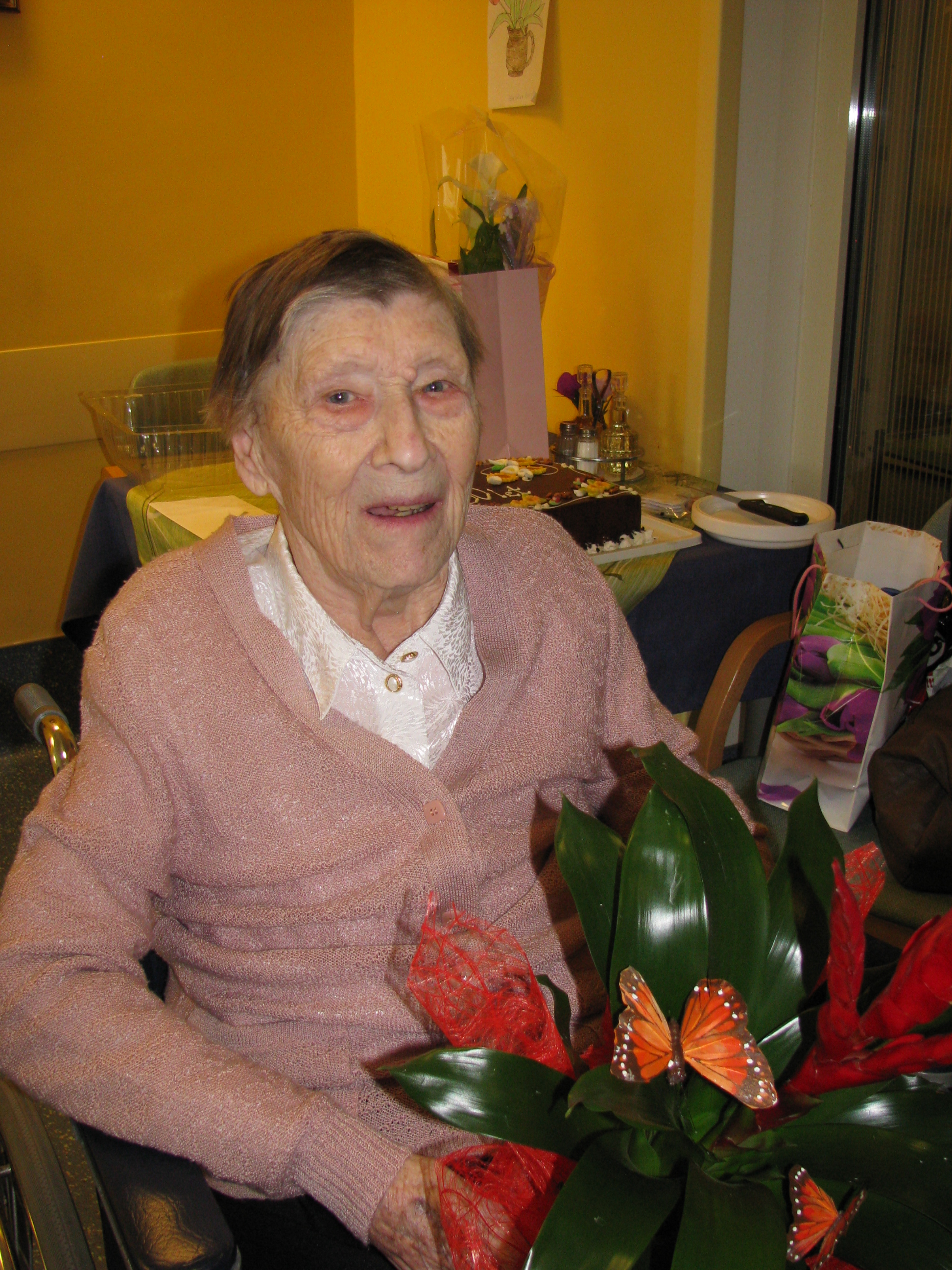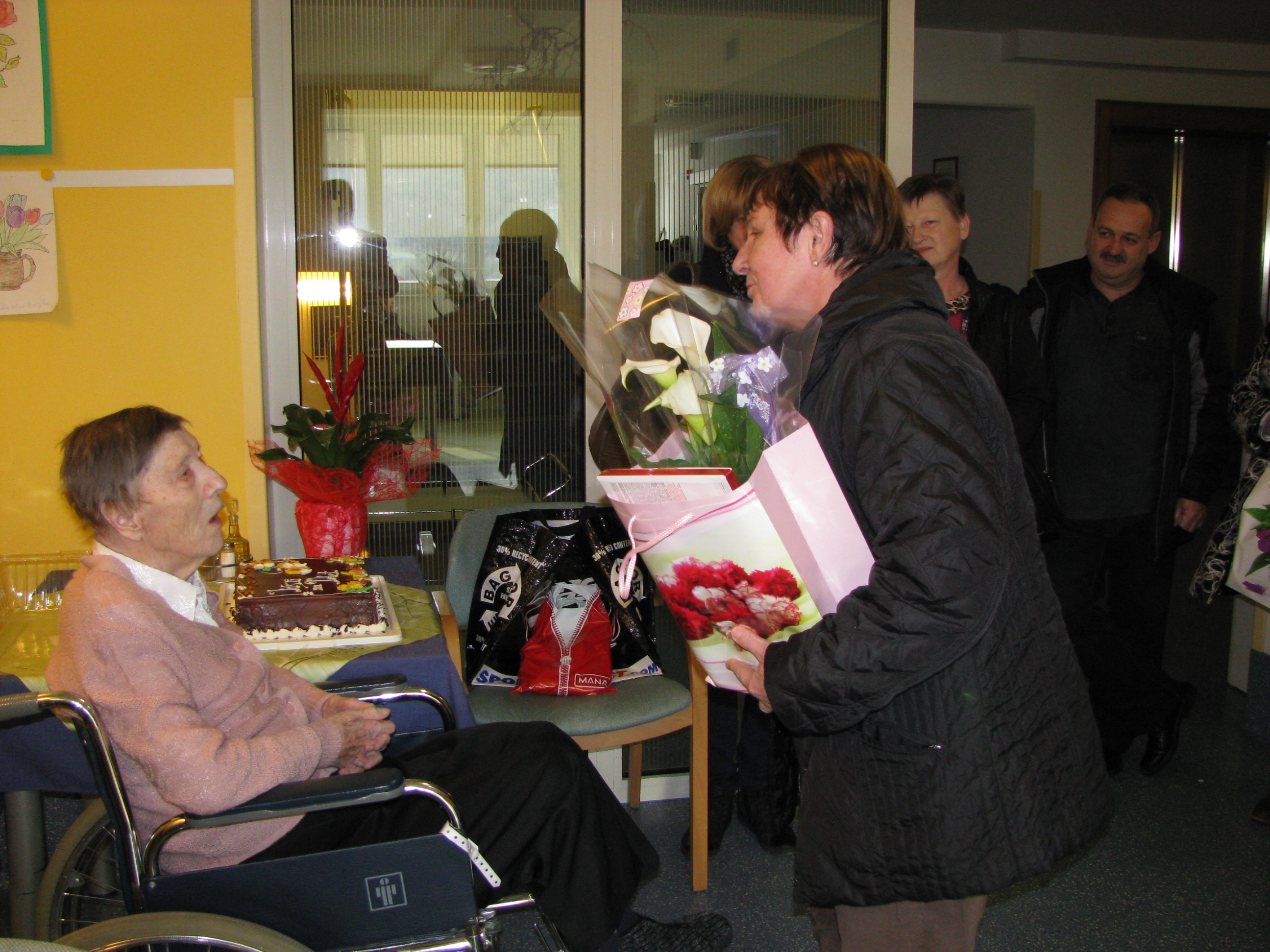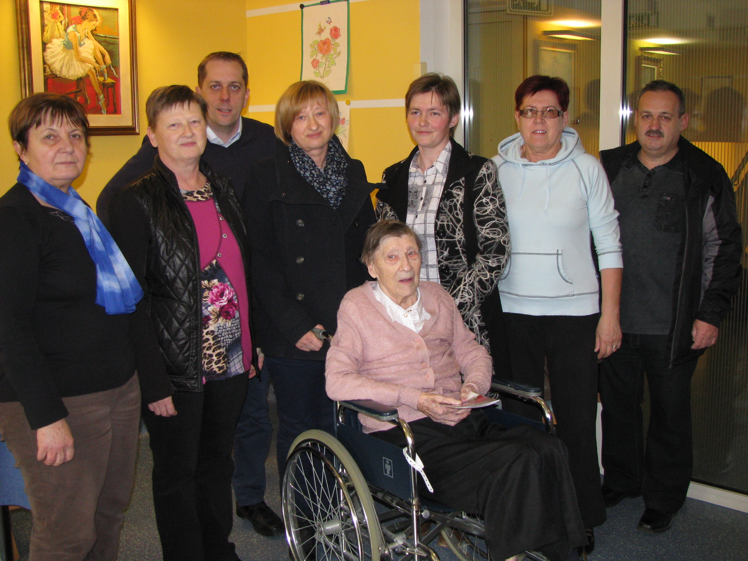 • Obisk pri ge. Justini Zahrastnik, Jagnjenica 35, ki je 4. 3. 2016 praznovala 90. Rojstni dan