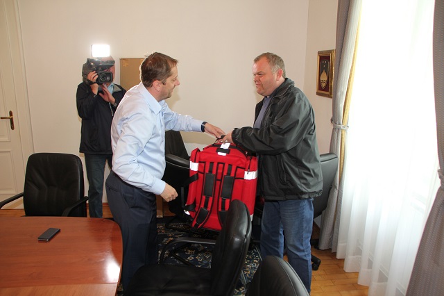 • Predaja nahrbtnikov z opremo za nudenje prve pomoči gasilskim društvom, 3. 5. 2017